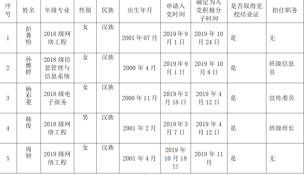 台湾五级片 党委 网络工程专业本科党支部关于确定彭菁怡等5名同志为发展对象的公示 经台湾五级片网络工程专业本科党支部培养考察,在听取培养联系人、党员和群众意见的基础上,经支部委员会讨论同意,报...