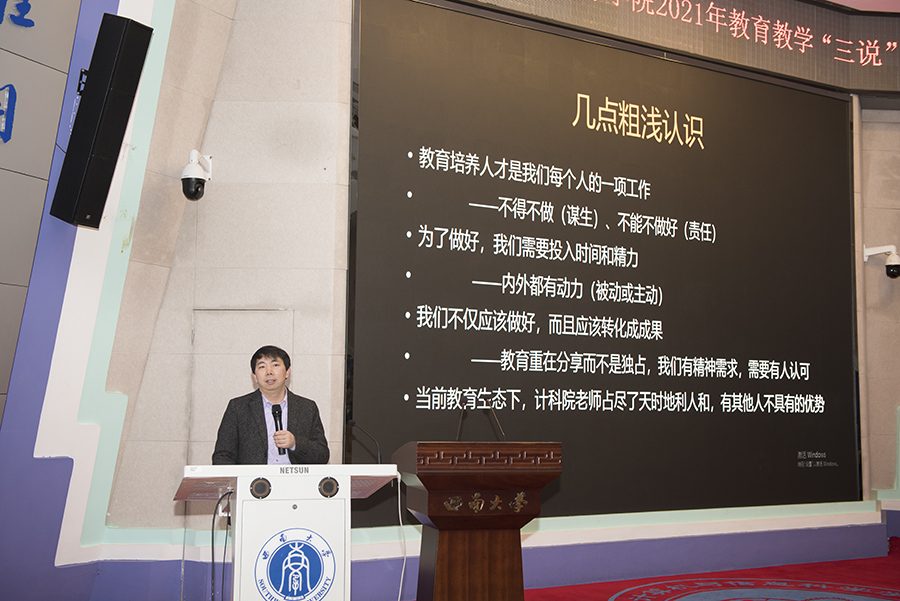 会上,李忠如教授以《本科课程建设与教学改革漫谈》为题做了主题报告。他提到,高等教育高质量的根本与核心是人才培养的高质量,开展教育教学“质量革命”势在必行,并从抓专业质量、抓课程质量、抓教材质量、抓技术质量四个方面阐释了人才培养的核心要素。新媒体时代需要思考教学的成效,通过分析教学现状,以费曼学习法为例,倡导以“教”为中心的传统模式向以“学”为中心的培养新模式转变。同时,他强调,课程建设与教学改革项目的评审更加重视特色,重视教育技术的充分应用,重视学生学习动力的激发,重视学习过程的评价,以国家级一流课程评审指标为导向,鼓励每个大学教师都进入课程教学改革之中。
