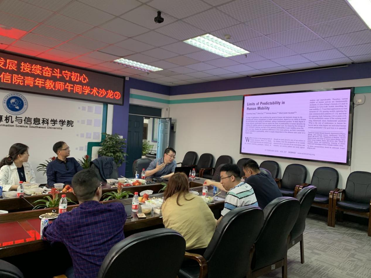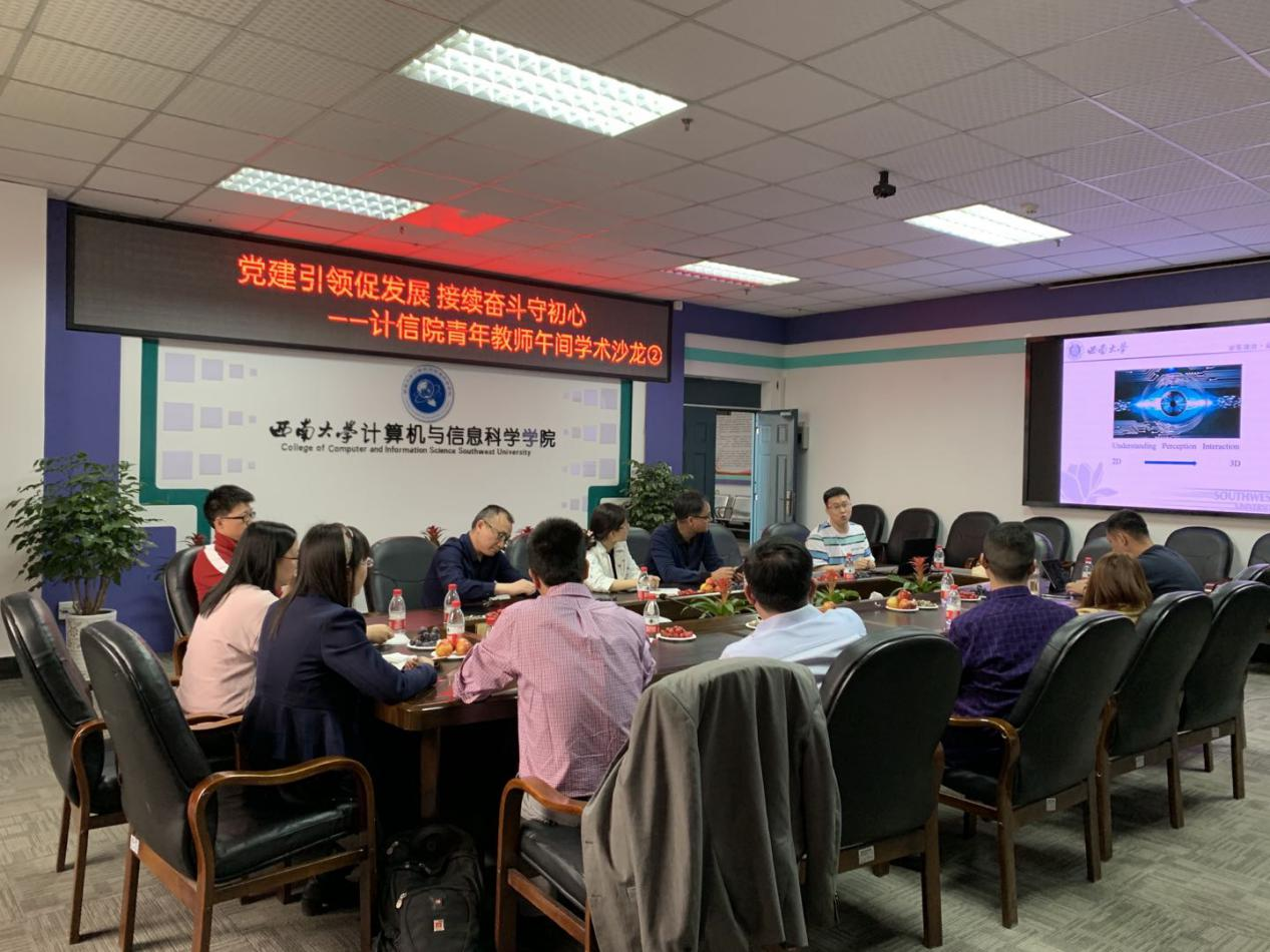 青年教师午间学术沙龙第二期开讲,学校信息化建设办公室主任贾韬、学院院长肖国强、党委副书记陈智、副院长韩毅、陶丽,工会主席王英以及学院青年教师参加活动。