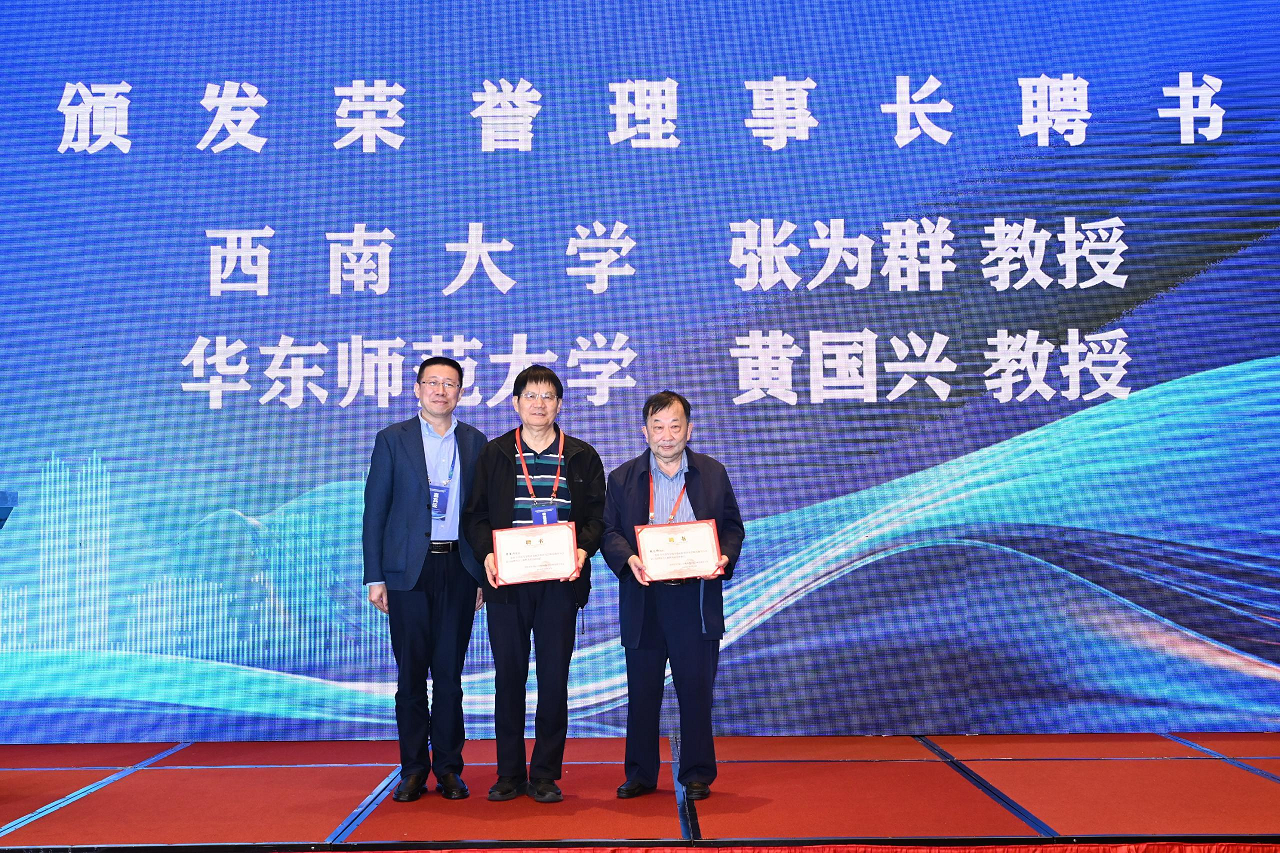 会议随后举行了理事会的换届选举。学院陈武教授当选全国高等学校计算机教育研究会师范教育分会新一届理事会理事长,邹显春老师当选秘书长,王英老师当选副秘书长。陈武理事长为张为群教授和黄国兴教授颁发了荣誉理事长聘书。