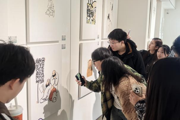美术学院雕塑系诸多作品集中亮相。李馆长为同学们讲解每一件作品背后的故事,引导同学们分享个人审美感受,同学们沉浸其中,或驻足凝思,或低语交流,享受这惬意的艺术时光。来到展馆二楼,无数国画映入同学们的眼帘,山水、花鸟、人像、诗词......饶有意趣的作品透露出山野情趣,引得同学们赞美与感叹;画上的题字也引得同学们讨论纷纷,笑语连连。