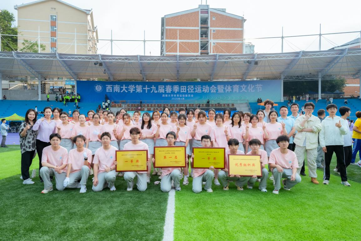 竞技赛场,学院健儿们奋力拼搏。短跑选手们如离弦之箭,在赛道上风驰电掣;长跑健儿们坚韧不拔,一步一个脚印地向着终点前进;跳远选手们身姿矫健,一次次挑战新的距离;铅球运动员们,奋力一掷,铅球如流星般划过天际,在空中划出一道优美的抛物线,展现着力量之美。接力赛中,我院接力队的选手们配合默契,交接棒精准无误。他们在赛道上相互鼓励、相互支持,为了团队的荣誉全力以赴,最终取得学生甲组第一名的成绩。