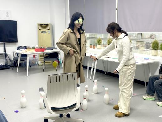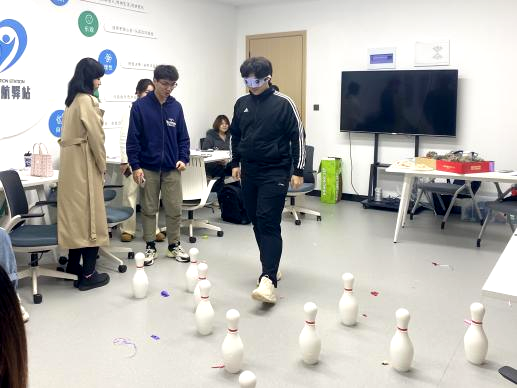 “心灵旅行”环节则为这场活动注入了温暖的深度。一人蒙眼扮演“旅行者”,另一人化身“导航员”,通过语言描述帮助同伴绕过预设障碍。这不仅是一场默契的考验,更是一次信任的建立。同学们在小心翼翼的探索与耐心的引导中,不仅锻炼了沟通表达能力,更在彼此的托付与支撑中建立起坚实的信任,现场涌动着温暖与鼓励的暖流,让情绪在信任的氛围中得到温柔解码。