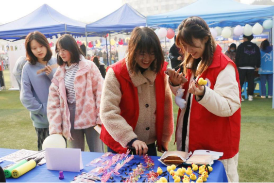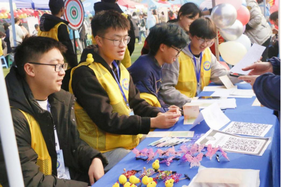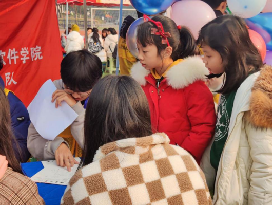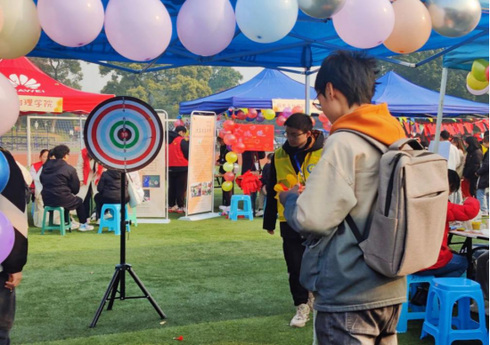 及时雨志愿者服务队作为我院代表队参与其中,在现场开设了掷飞镖、识硬件等有趣的活动,并提供活动纪念章与各色精美礼品,吸引了全校相当多的学生前来参加。