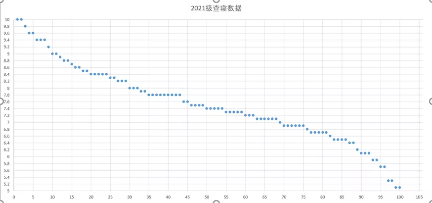 通过结果反馈,2019级的调查结果呈现头重脚轻的现象,高分数据所占比例大,中间分数较为均匀。而2021级的数据较为均衡,两头少,中间多。数据的中点在7.4分左右,大于7.4分的相比于小于7.4分的多一些。由此可见2019级打分可能存在一些问题,希望下次可以做得更好。
