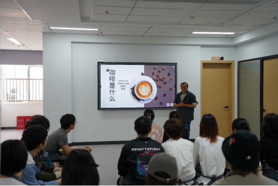 活动伊始,詹老师向同学们介绍到咖啡是一种植物,一种商品,更是作为一种饮品而受全世界喜爱。随后詹老师讲解到咖啡在不同生长环境下的独特风味,他精心准备了咖啡杯测小游戏,他拿出六种不同风味的咖啡豆,手动研磨,让同学们通过嗅觉、味觉的多重体验,去感受每一颗咖啡豆的独特风味及背后所蕴藏的故事。游戏过程中同学们热情高涨,细心品味,试图通过微妙的香气和口感差异,找寻与咖啡的契合之处。詹老师讲到,咖啡不仅是一种饮品,更是一种文化的象征、一种生活的艺术。从咖啡豆的研磨、冲泡,到咖啡的品鉴、享受,每一个环节都充满了无限的可能性和创意。