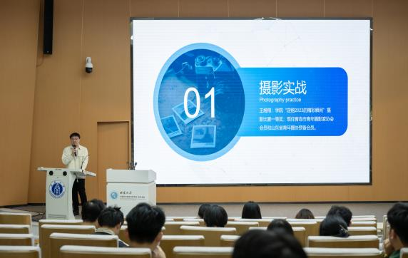 为了提升学生摄影水平,培育生活中的审美意识,学院码动青春·成长工坊于4月11日下午在25教一楼报告厅开展“共赴光影之旅 镜界探索与创作对话”摄影技巧分享活动。计算机科学与技术(师范)本科生党支部王煜翔、王家艺受邀给大家分享摄影技巧与见解,学院百余名学生参与了分享活动。