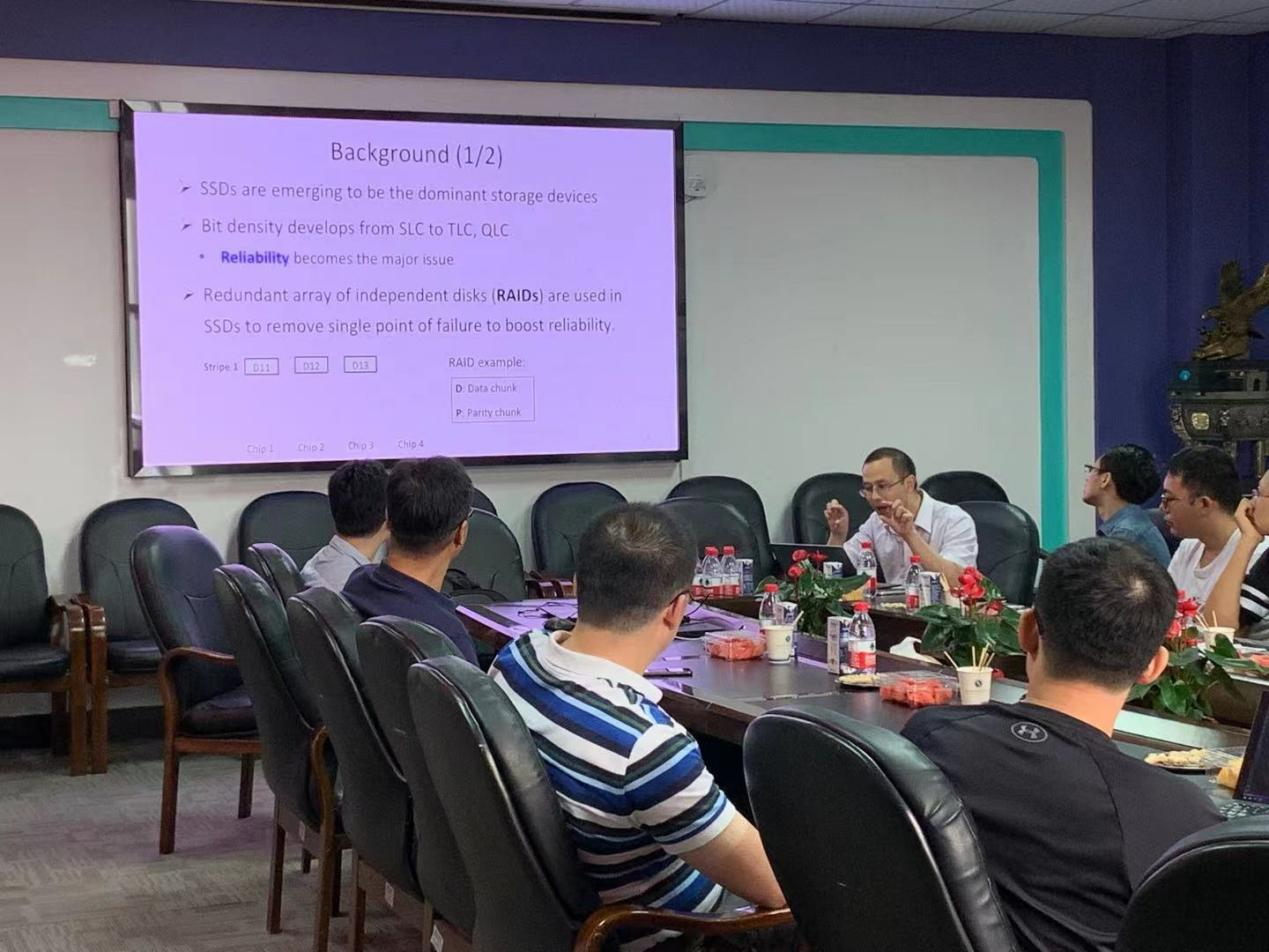第四讲分享嘉宾为廖剑伟教授和杨铮教授。廖剑伟老师介绍了其近期研究工作“固态硬盘中基于补丁的缓存管理机制”,针对双拷贝的独立磁盘冗余阵列磁盘(RAID)缓冲区中的缓冲效率问题,基于缓存数据块的修改部分(称为数据补丁),利用成本评估模型来指导补丁数据的替换,并考虑到原始的脏数据块和相关最新补丁的关系,设计了基于补丁的读/写模式,提高支持RAID的固态硬盘的双拷贝缓冲区使用效率。