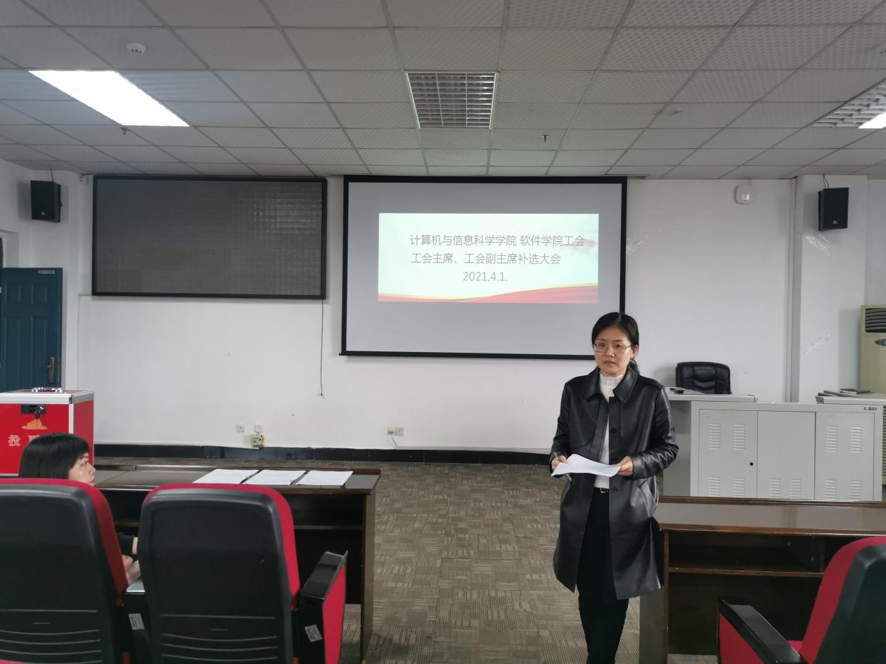 在25教1320会议室召开学院第四届工会主席、副主席补选大会。会议由学院工会主席陶丽主持,学院工会委员共8人参加会议。