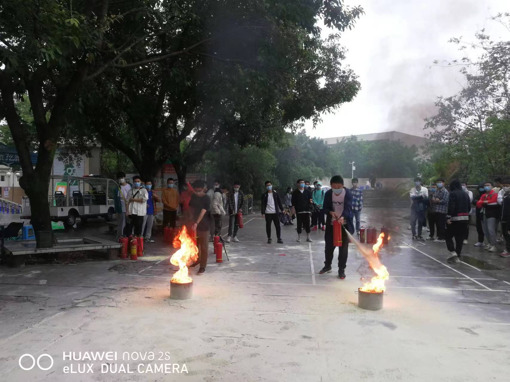 下图为学生上课内容环节——使用灭火器: