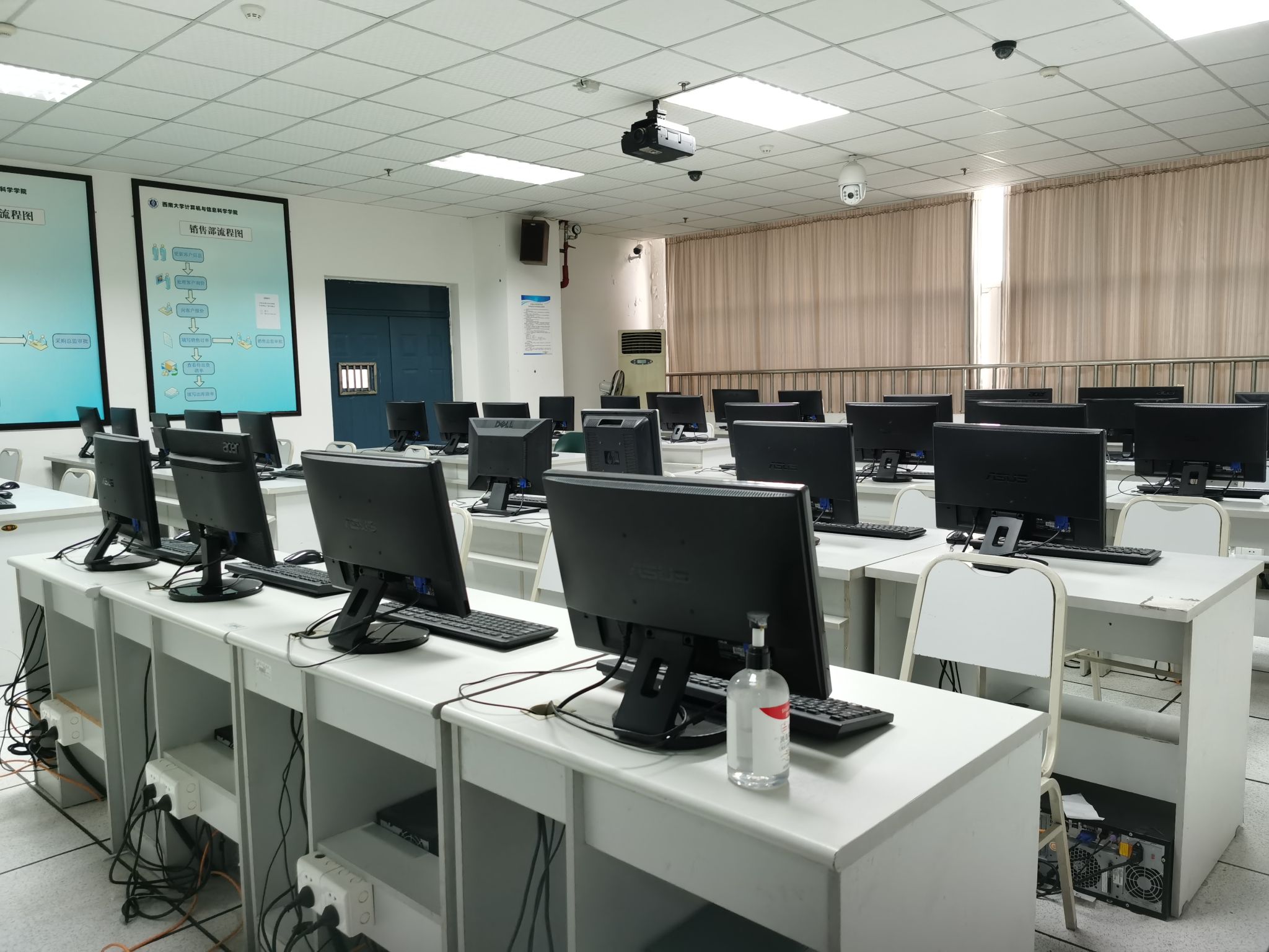 计算机科学、网络工程专业。本实验室拥有华硕台式电脑30余台,每台计算机都安装了相关专业计算机实验课程所需要的开发软件和应用软件,所有计算机直接连接校园网,可以直接访问校内及校外(需登录校园网帐户)任何地方的资源,每个机房均安装多媒体功放机、吸顶式音箱、可移动宽幅白板、极域电子教室等教学设备和软件。目前,实验室承担或支持专业计算机实验教学任务,包括《数据结构》、《计算机导论》等10多门课程。该实验室采用采用IDV虚拟桌面架构,提供基于客户端本地高性能服务要求的云桌面系统。