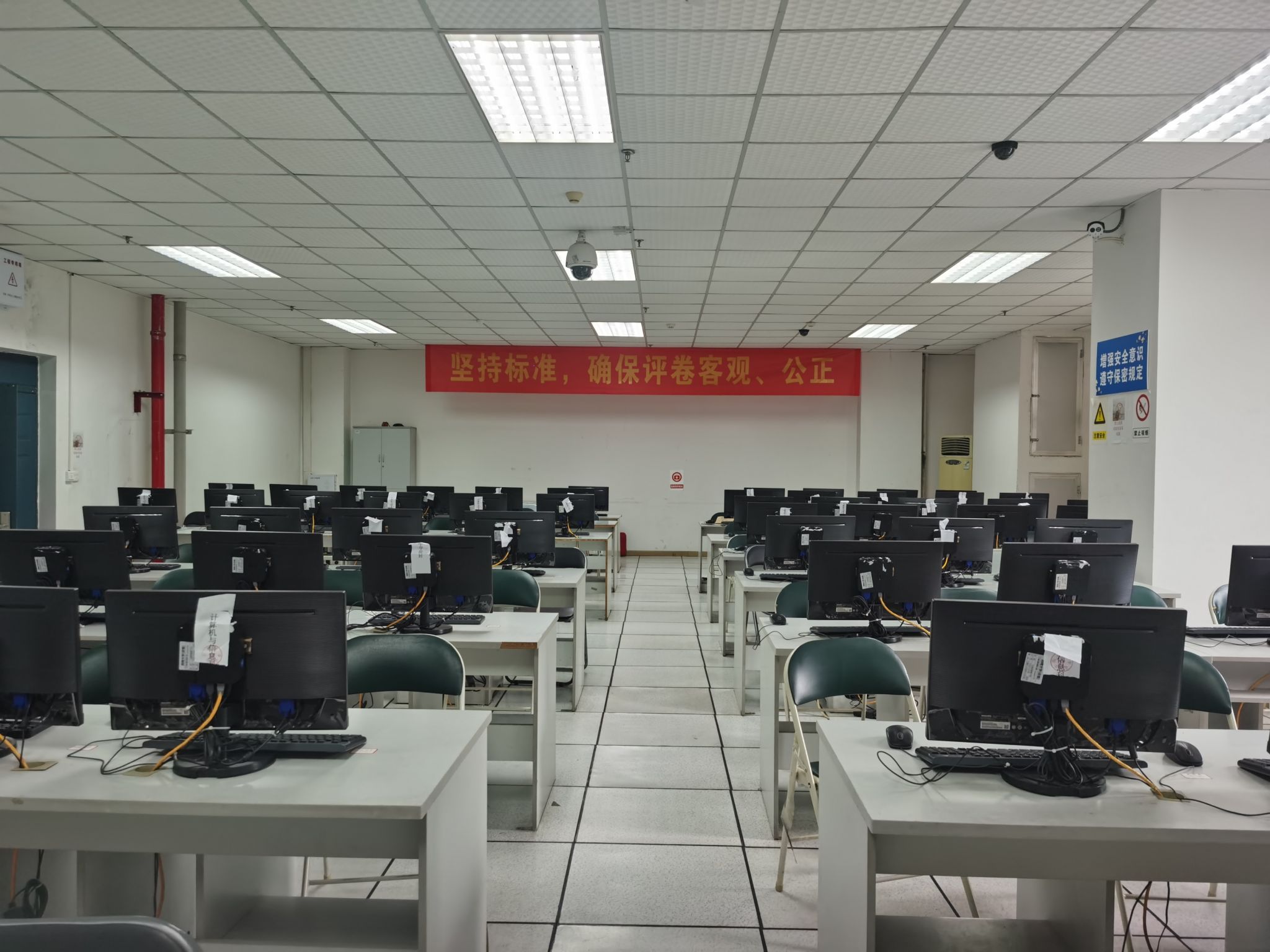 该实验室共有71台学生机,1台教师机,全部采用深信服云平台瘦客户端结构,支持WIN7(32位)、WIN7(64位)、WIN10、LINUX等多平台系统,在不同平台上共有上百款教学用软件。老师和学生可以根据不同的需要选择不同的平台与软件进行实验。可支持高考阅卷、研究生自主招生、毕业生实习答辩等社会服务工作。