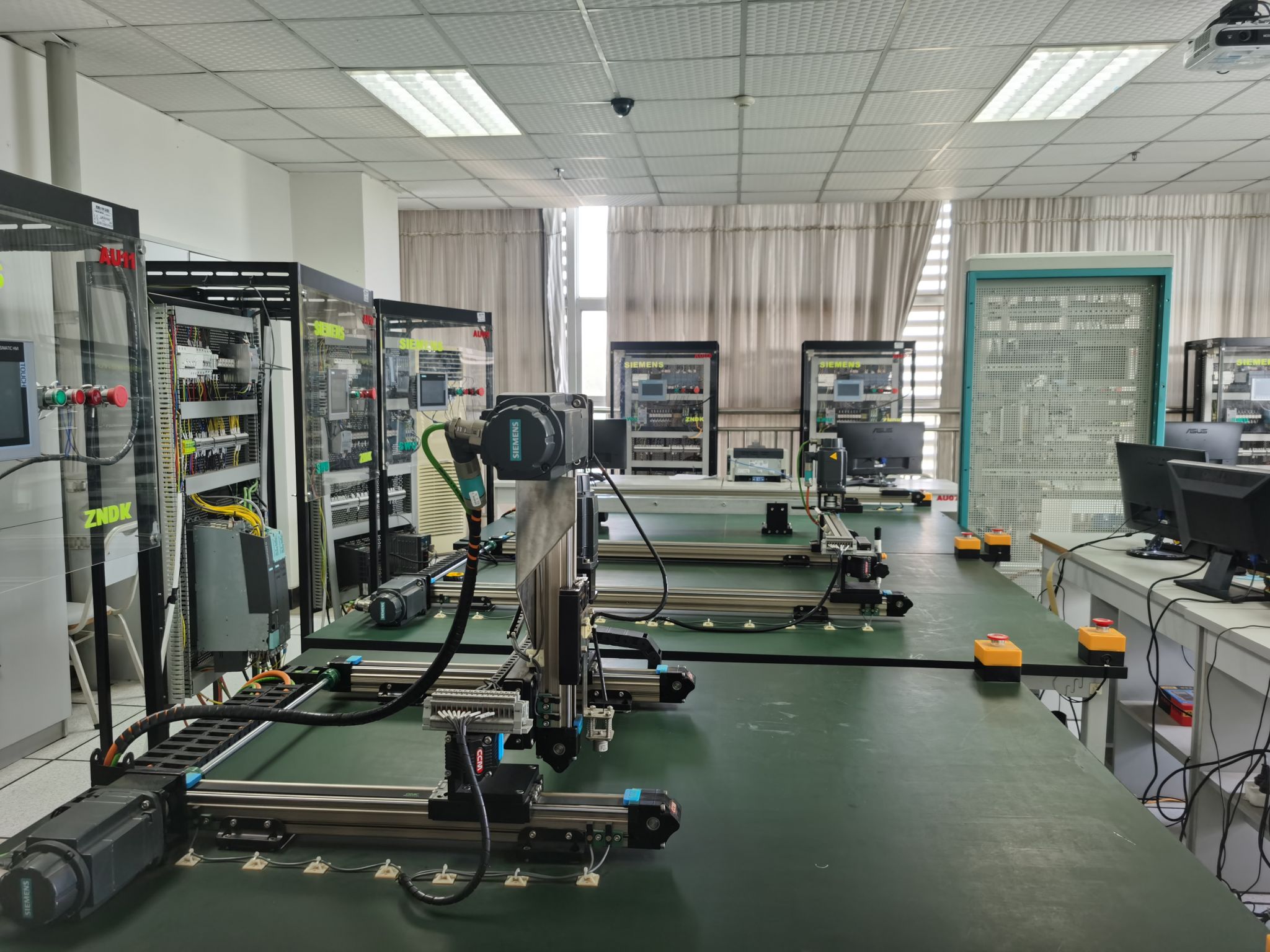 电气系统实验室(813)现有设备:西门子控制系统8套,运动控制系统3套,西门子控制软件软件有11套,各种控制对象有11套。对于电机学课程,这些设备可以用来研究和分析电气系统和电动机的特性。学生可以使用这些设备学习到如何编程、设置参数以及优化控制策略,更好地理解电气系统的运行原理和控制方式。